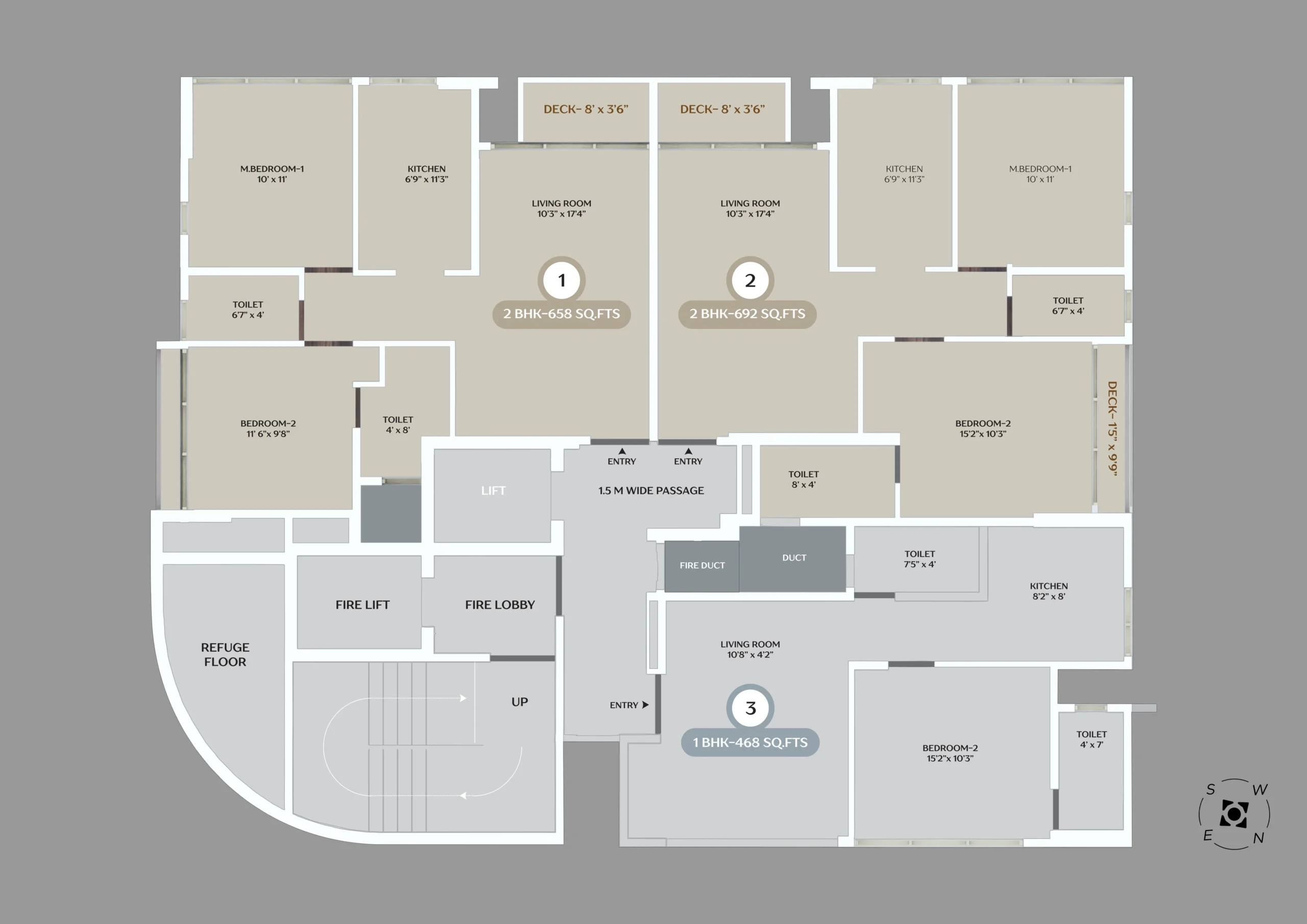 2BHK - 658 SQ.FT, 2BHK - 690 SQ.FT, 3 BHK - 1348 SQ.FT